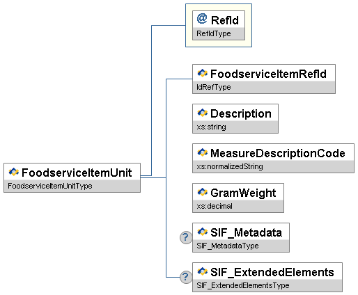Figure 3.6.4-1: FoodserviceItemUnit| Element/@Attribute | Char | Description | Type | |