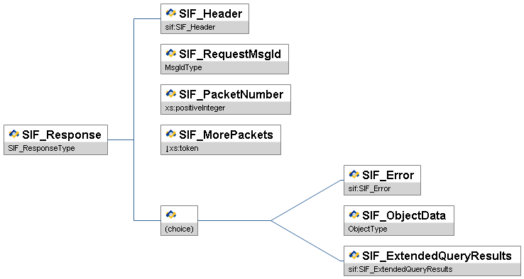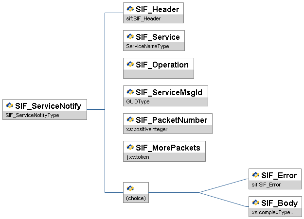 Note: With SIF Implementation Specification version 2.5 the choice element depicted in the diagram below has changed. In the XSD files, the choice element used to be rendered as a sequence of optional elements. Now, in the XSD files, the choice element is rendered as an xs:choice. This may cause problems with agents that treat the choice element as two optional elements rather than a choice of one and only one of the choices.