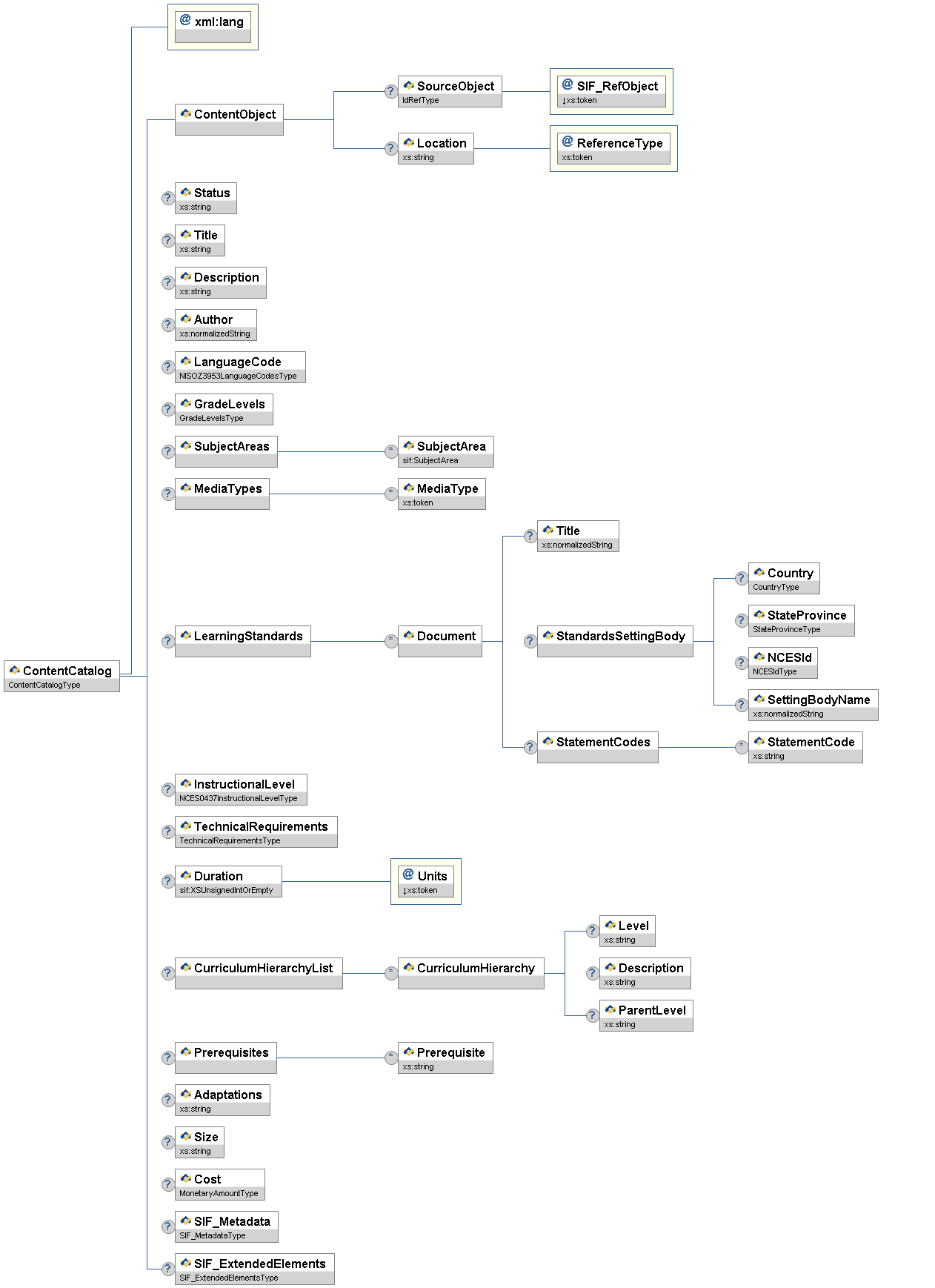 | ContentCatalog | This object contains information related to learning resources that can be searched for and retrieved from content repositories. | |||