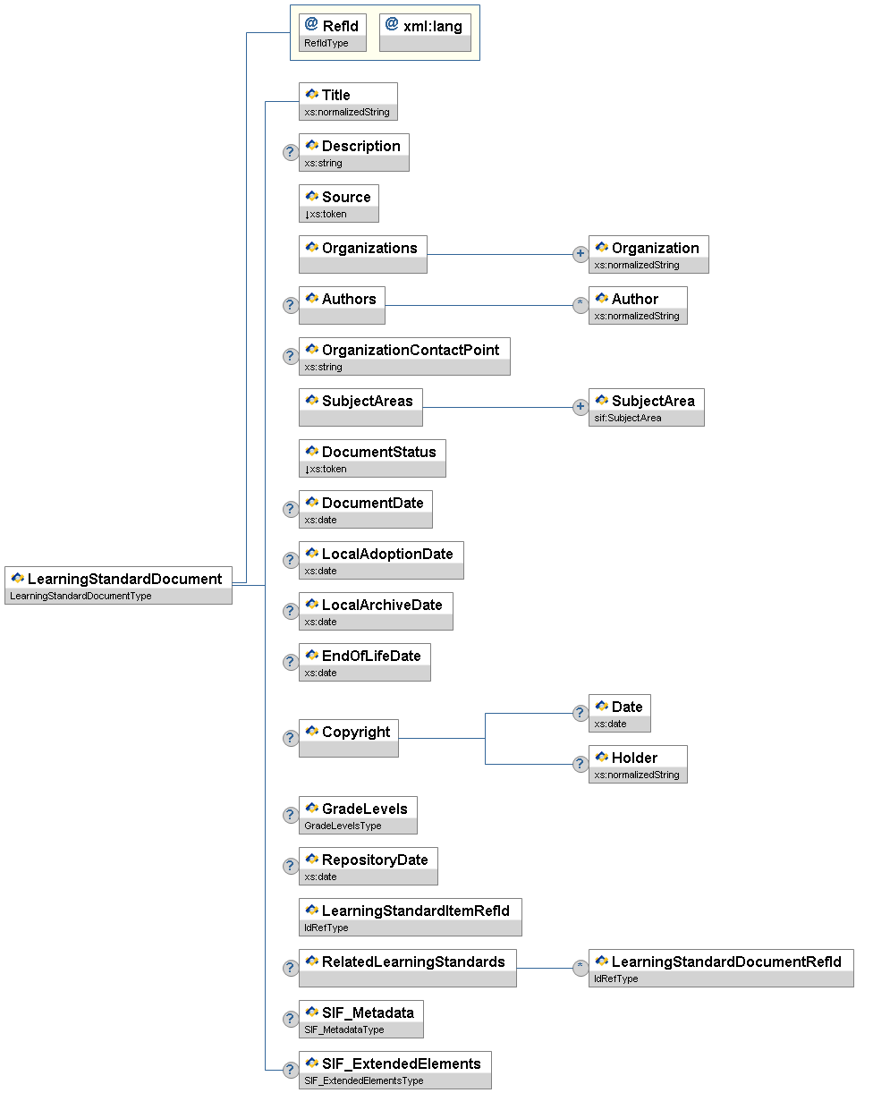 | LearningStandardDocumentRefId | M | The RefId of the item's parent LearningStandardDocument. | IdRefType | |