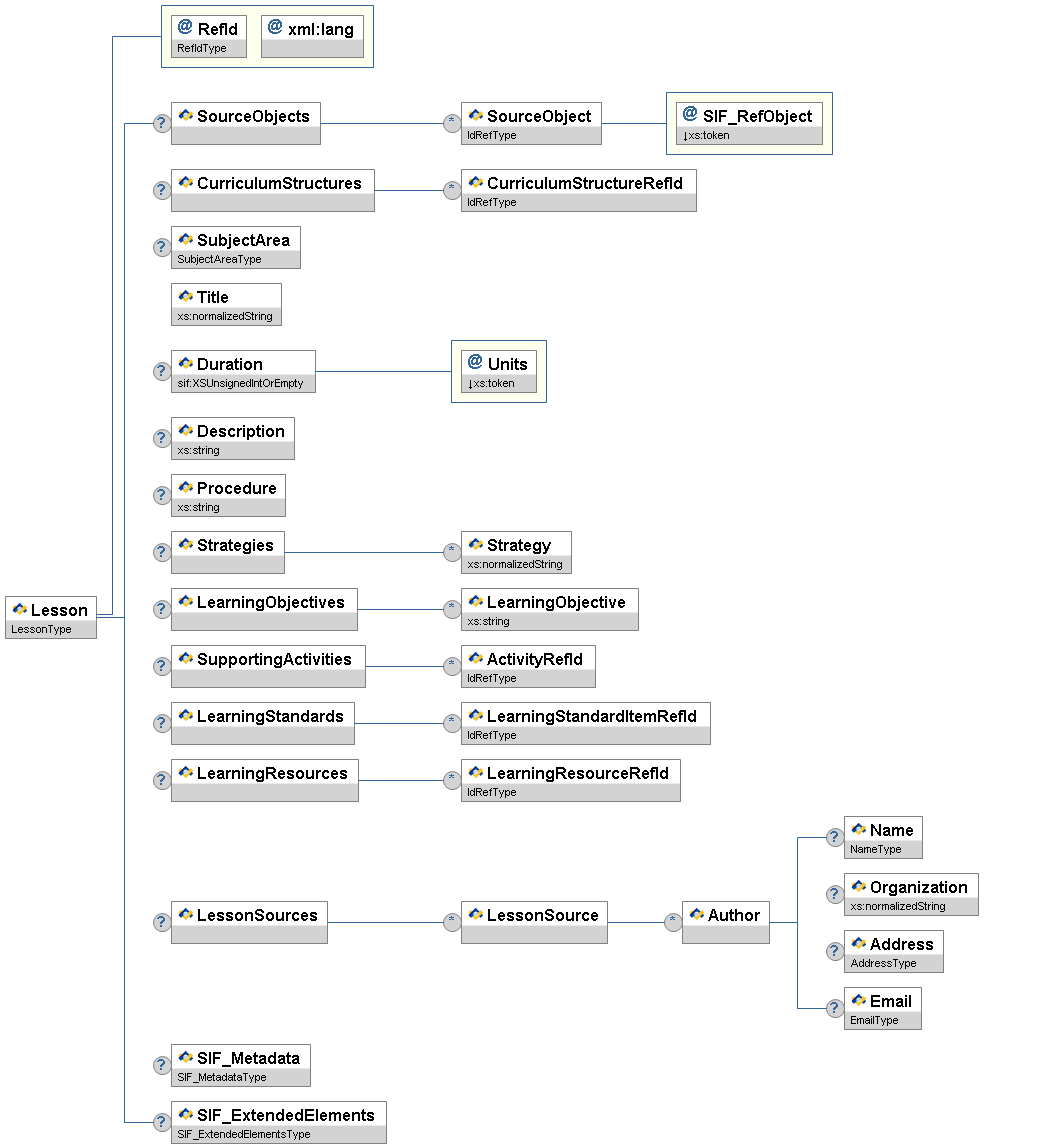 | LearningResources/LearningResourceRefId | OR | A GUID reference to a SIF LearningResource object that supports this activity | IdRefType | |
