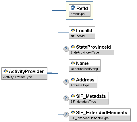 | @ | ActivityProviderRefId | M | References the ActivityProvider object | IdRefType |