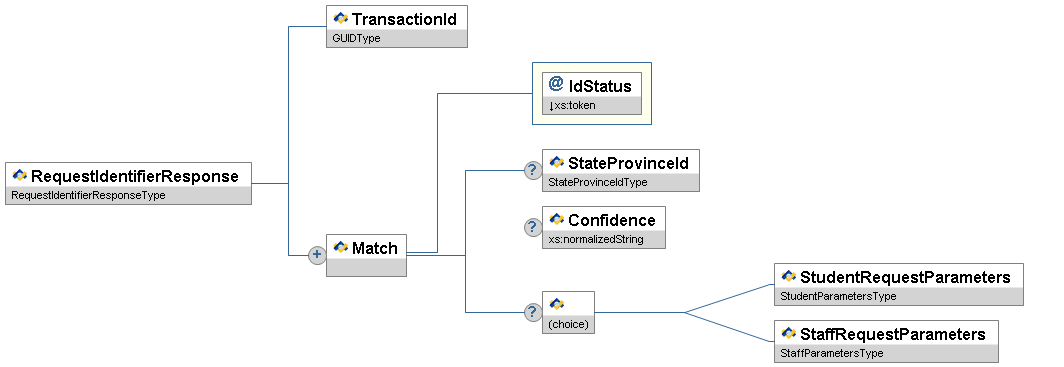 | Match/StaffRequestParameters | C | Characteristics of the staff person identified by the district which the state uses to perform its matching logic. This element is used with the Staff Identifier Service. | StaffParametersType |