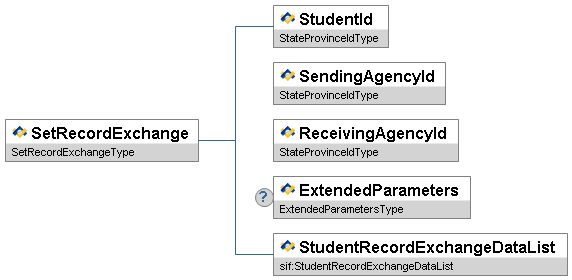 | serviceSREConsumer | SetRecordExchange | SetRecordExchangeResponse | Requests that a StudentRecordExchange object set be consumed by a receiving agency. For example, if a broker initiates an exchange between a sending agency and a receiving agency, it uses this service to deliver the results to the receiving agency. A Packet break can occur at the end of the StudentRecordExchangeData element in SetRecordExchange. |