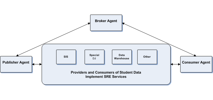 While the Student Record Exchange Services defined here do not require intermediary agents – any two agents that implement the SRE Publisher and SRE Consumer services can directly exchange student records – they are designed to not only accommodate but to promote their use.