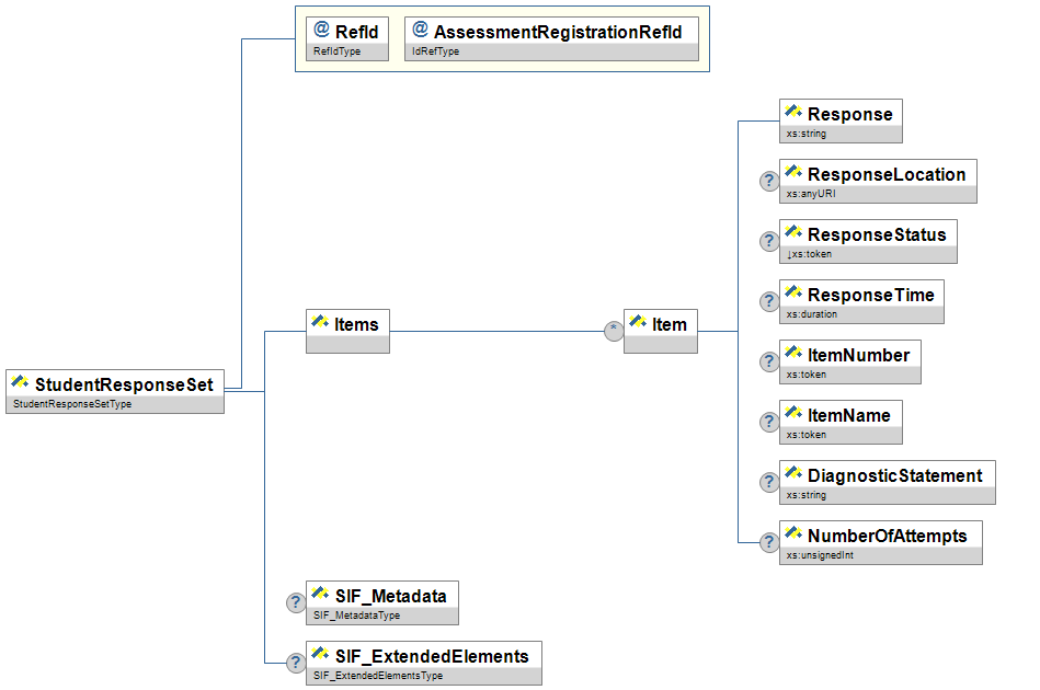 | @ | AssessmentRegistrationRefId | M | The registration associated with the response set. | IdRefType |