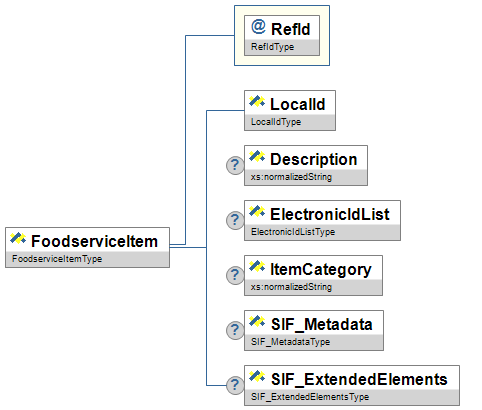 Figure 6.6.1-1: FoodserviceItem| Element/@Attribute | Char | Description | Type | |