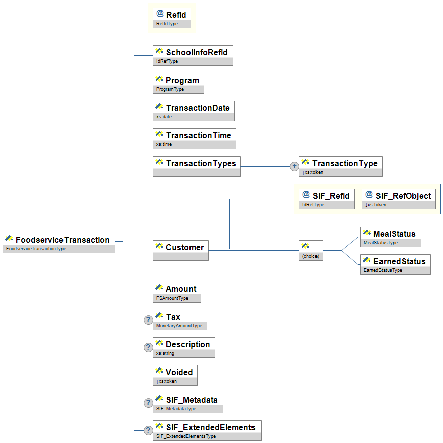 | FoodserviceTransaction | This object communicates food service transaction information. This is the key object that will be present for every food service transaction. | |||