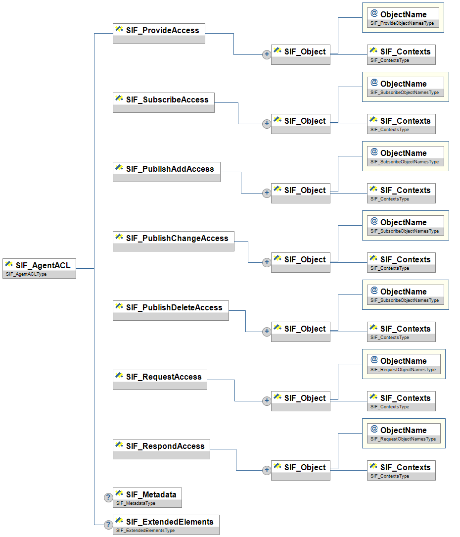 | SIF_AgentACL | This object provides an Agent its access control list (ACL) settings in the Zone. | |||