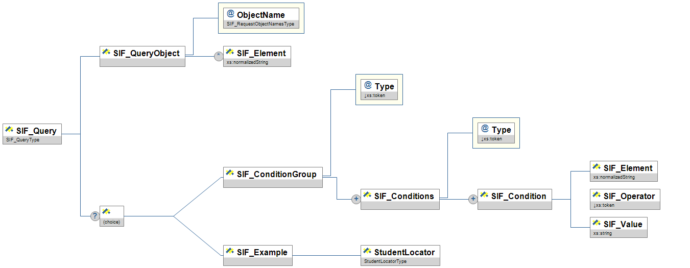 | SIF_ConditionGroup/SIF_Conditions/ SIF_Condition/SIF_Element | M | This is the element/attribute being queried. See below for syntax. | xs:normalizedString | |