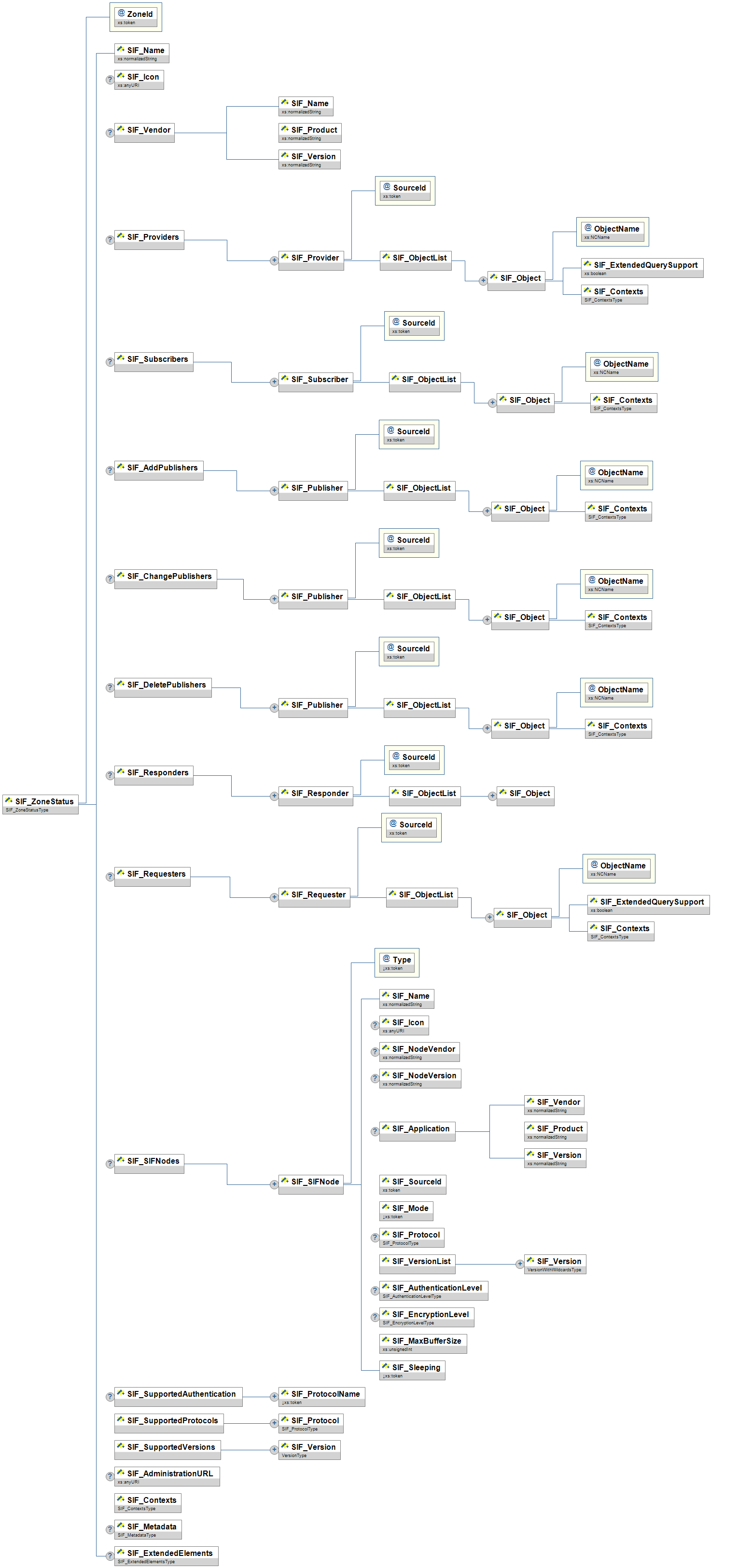 | SIF_SIFNodes | C | Encompasses all of the nodes registered with the ZIS. This element is mandatory if there are SIF nodes registered. | List | |