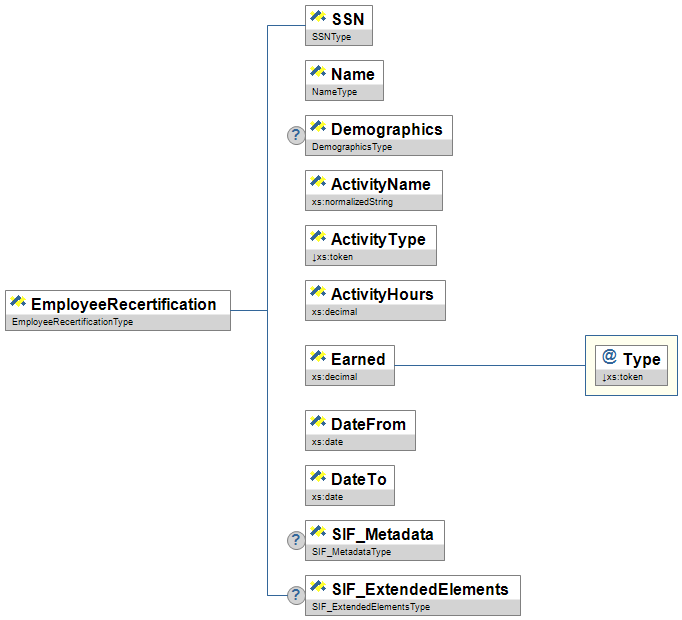 Figure 6.12.4-1: EmployeeRecertification| Element/@Attribute | Char | Description | Type | |