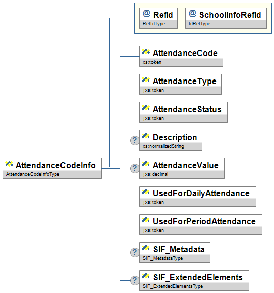Figure 6.14.1-1: AttendanceCodeInfo| Element/@Attribute | Char | Description | Type | |||||