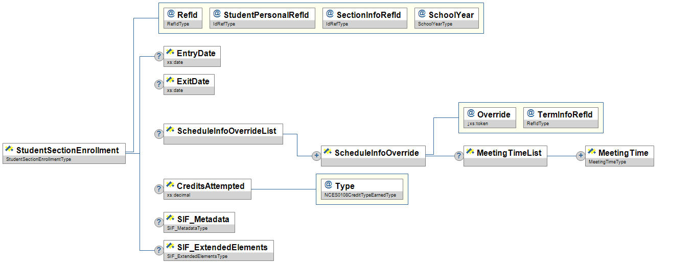 Figure 6.14.19-1: StudentSectionEnrollment| Element/@Attribute | Char | Description | Type | |