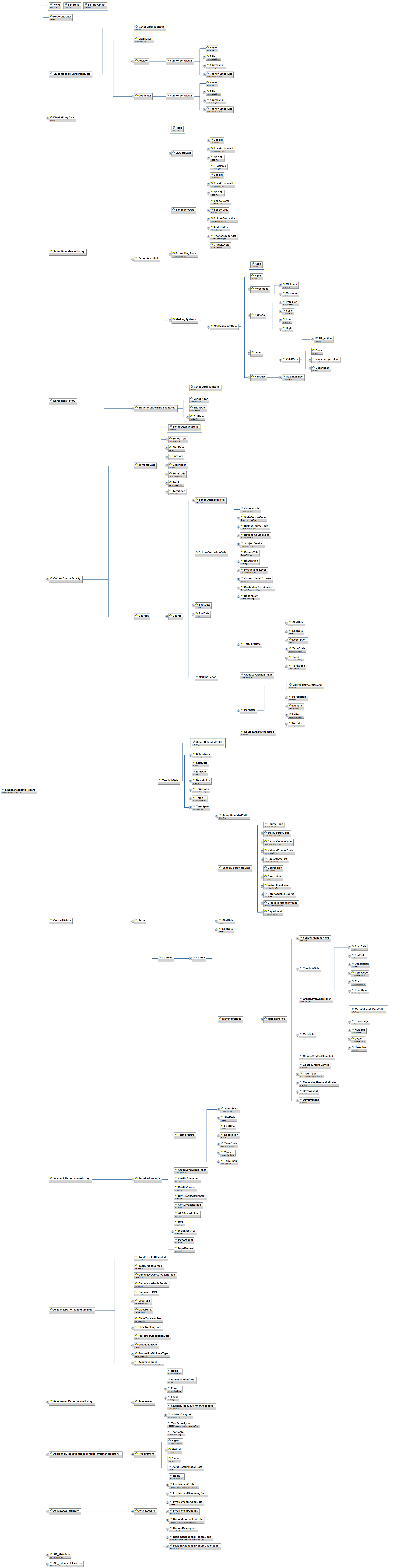 | StudentRecordExchange | This object contains references to the set of records associated with and available for a given student. | |||