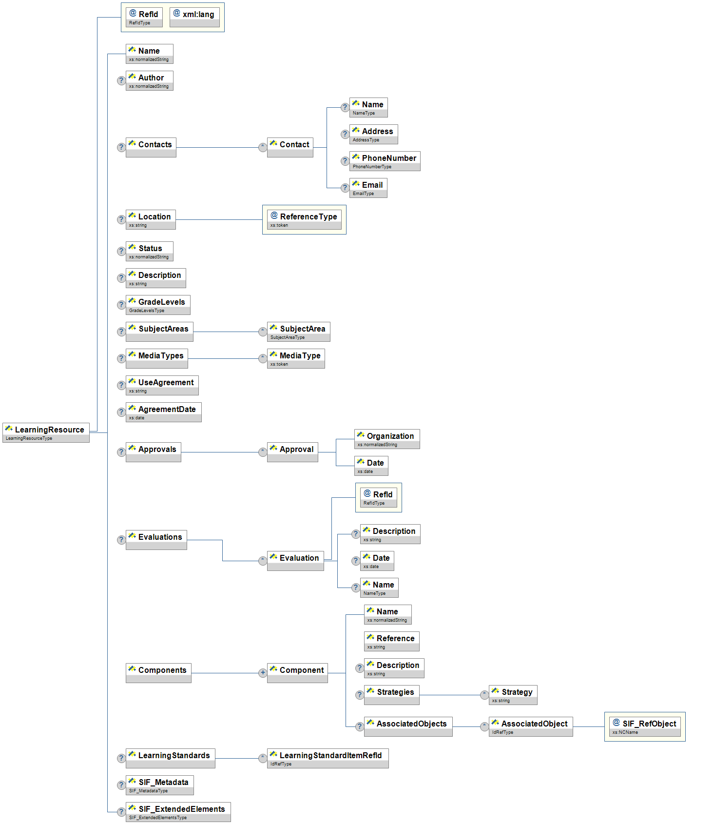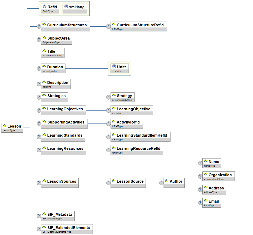 | LearningResources/LearningResourceRefId | OR | A GUID reference to a SIF LearningResource object that supports this activity | IdRefType | |