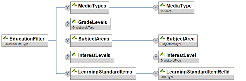 | InterestLevels | O | InterestLevels is designed to represent the grade level for which the content is created. For example a tenth grader is at a third grade level in Algebra. You would want to present the content at a third grade level, but in a tenth grade context or interest level. | List | |
