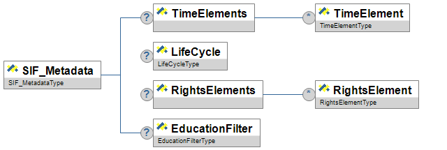| SIF_Metadata | A commonly defined container for metadata elements defined within SIF. | |||