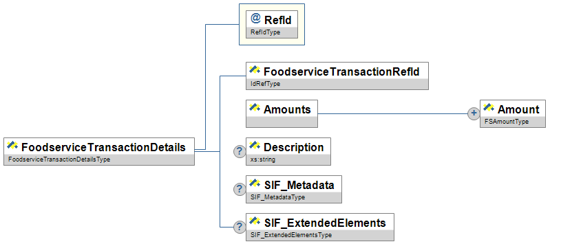 Figure 6.6.16-1: FoodserviceTransactionDetails| Element/@Attribute | Char | Description | Type | |