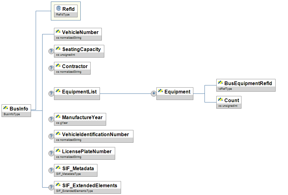 | EquipmentList/Equipment | MR | Inventories each piece of special equipment on the bus. | ||