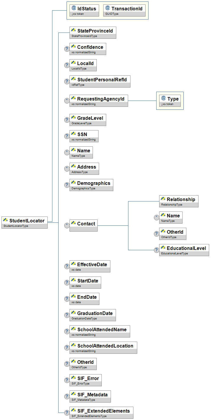 | StudentLocator | This object provides a mechanism for requesting and updating state student identifiers. While communicated using SIF's request/response