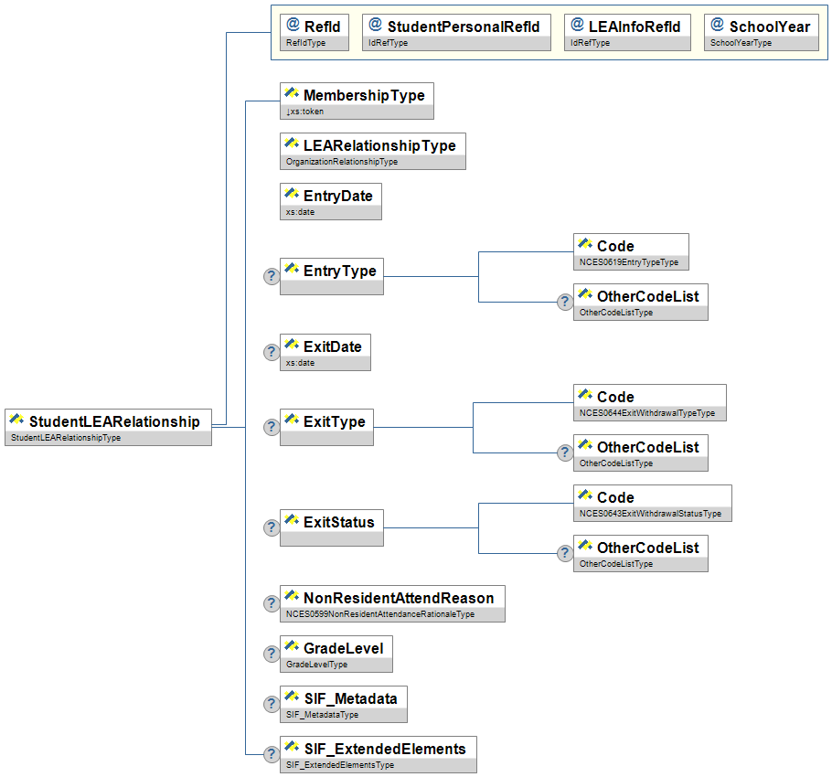 | SIF_Metadata | A commonly defined container for metadata elements defined within SIF. | |||