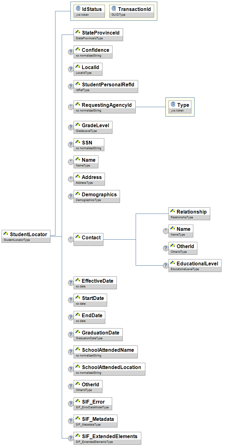 | StudentLocator | This object provides a mechanism for requesting and updating state student identifiers. While communicated using SIF's request/response