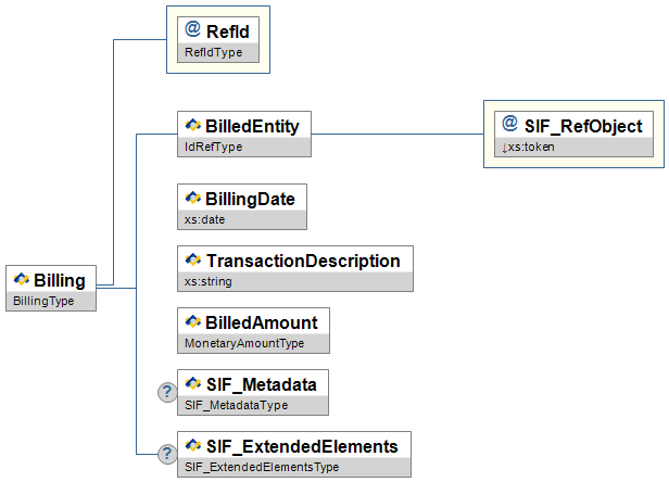 | BilledEntity | M | Id of the entity being billed for this billing activity (e.g., student, employee, organization). | IdRefType | |