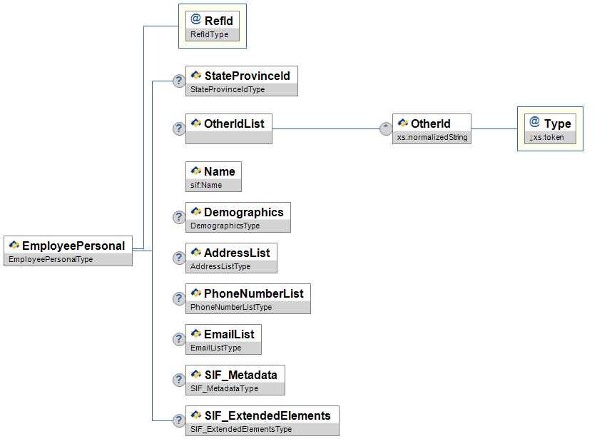 | EmployeePersonalRefId | M | References associated EmployeePersonal object. | IdRefType | |
