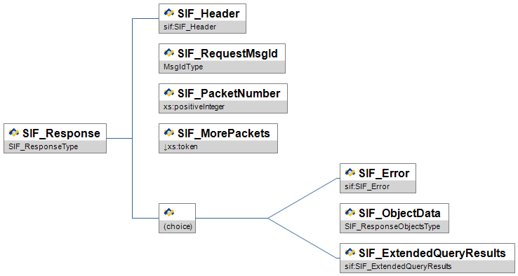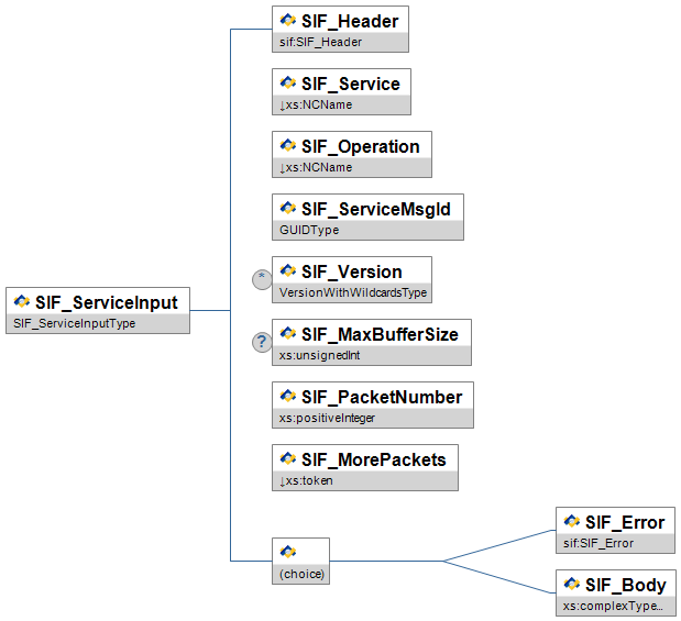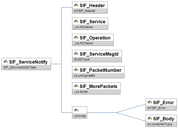 Note: With SIF Implementation Specification version 2.4 the choice element depicted in the diagram below has changed. In the XSD files, the choice element used to be rendered as a sequence of optional elements. Now, in the XSD files, the choice element is rendered as an xs:choice. This may cause problems with agents that treat the choice element as two optional elements rather than a choice of one and only one of the choices.
