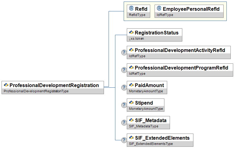 | @ | ProfessionalDevelopmentActivitiesRefId | M | References the ProfessionalDevelopmentActivities object | IdRefType |