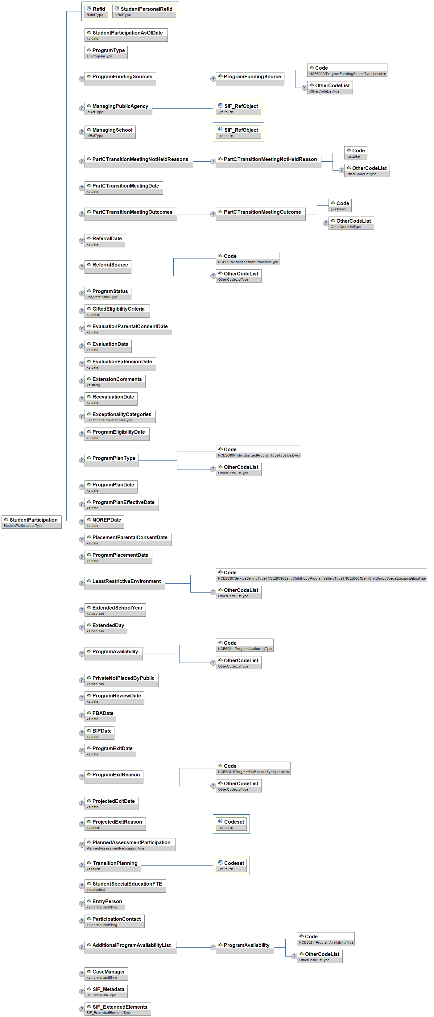 | @ | StudentParticipationRefId | M | This is the reference code for student eligibility for participation | IdRefType |