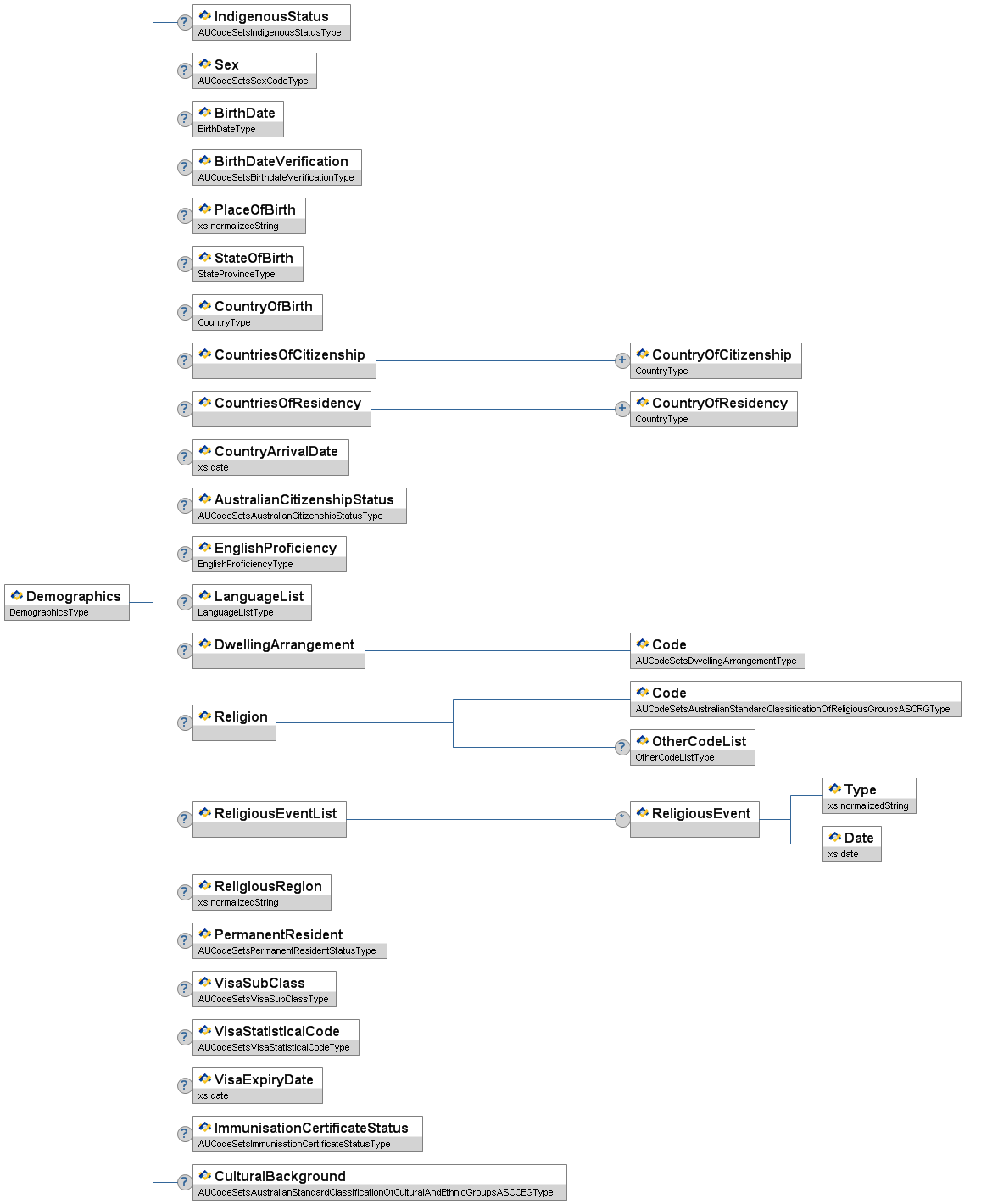 | PublishInDirectory | Indicates whether or not information should be published in a directory. | AUCodeSetsYesOrNoCategoryType |