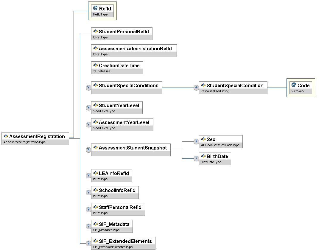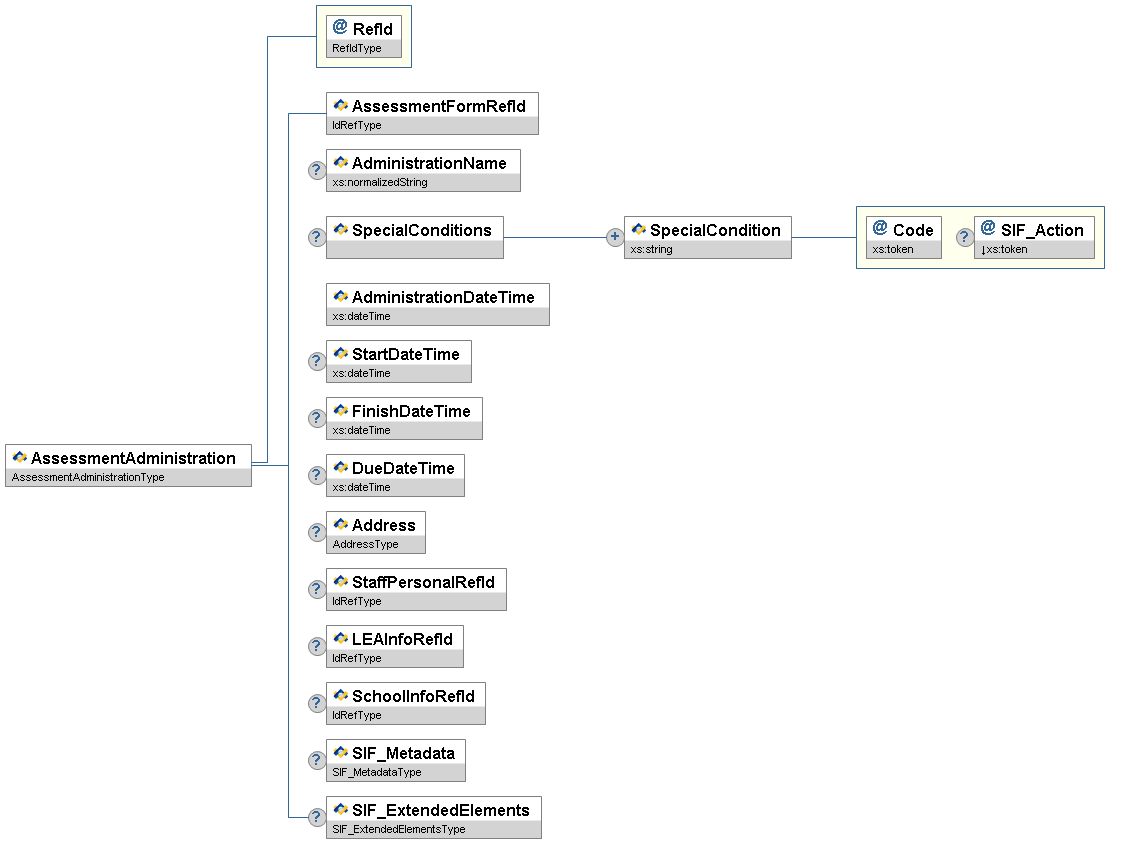| AssessmentRefId | M | The RefId of the assessment related to this form. | IdRefType | |