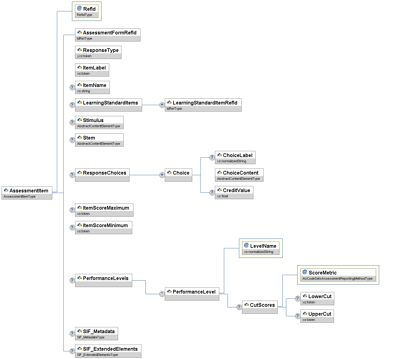 | AssessmentFormRefId | M | This RefId points to the assessment form of which the item is a part. | IdRefType | |