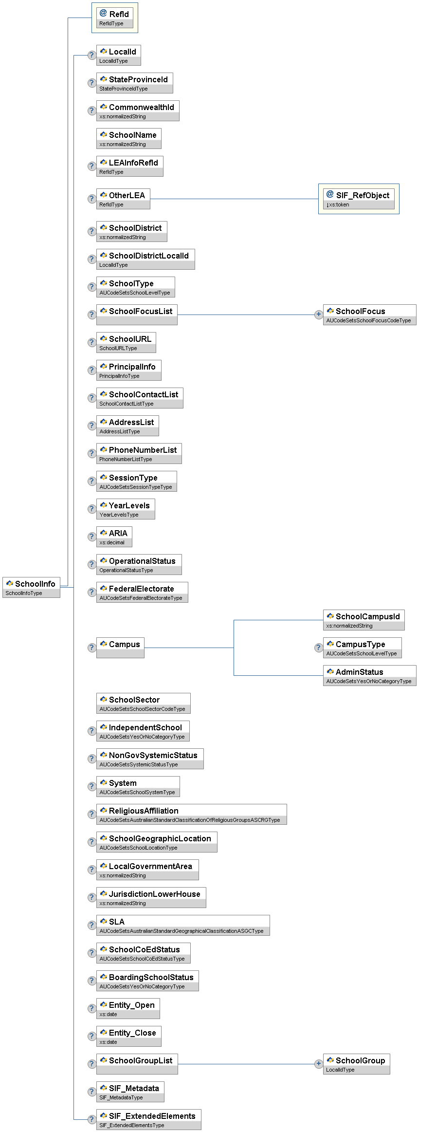 | SchoolInfoRefId | O | Optional the GUID of the SchoolInfo Object if this object is known in the zone | IdRefType | |