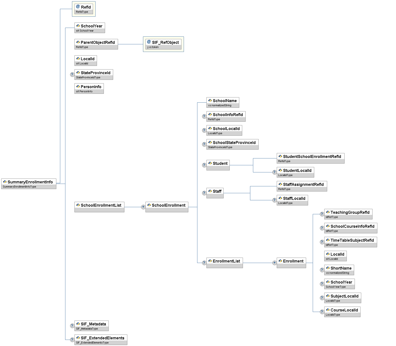 | SchoolInfoRefId | O | Optional the GUID of the SchoolInfo Object if this object is known in the zone. | IdRefType | |
