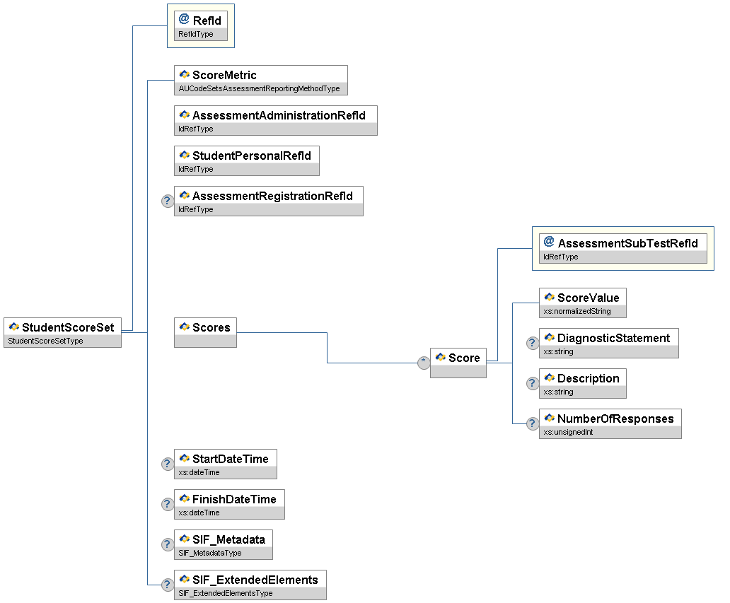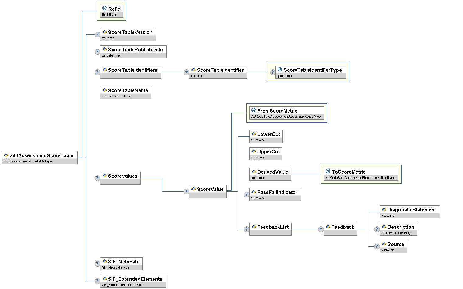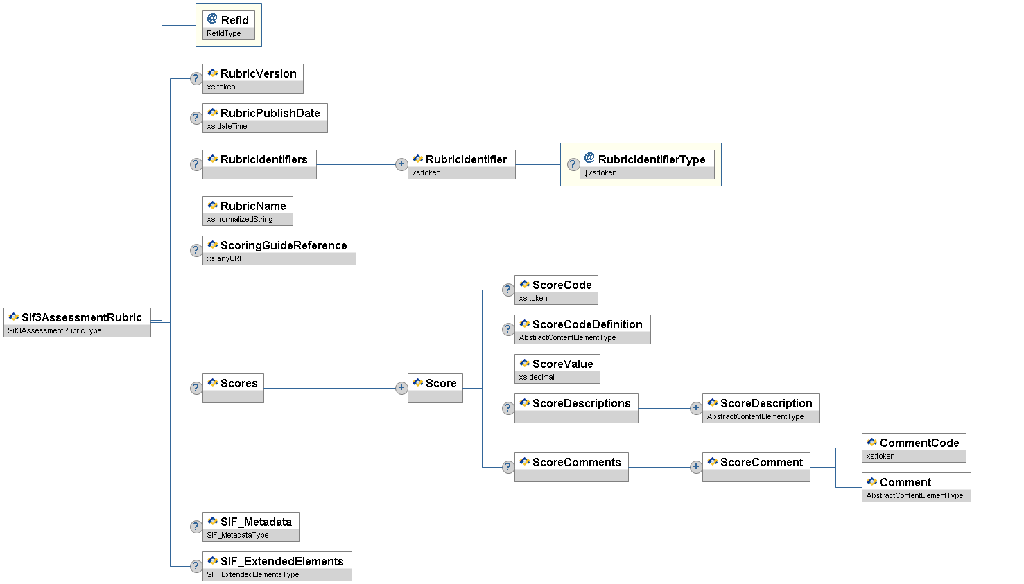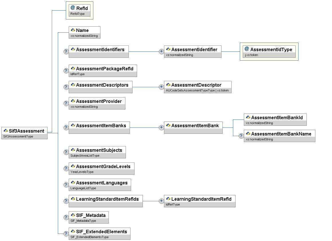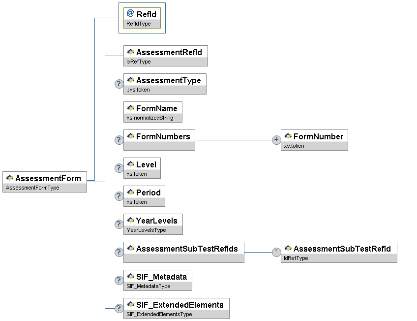 | AssessmentRefId | O | Link to the SIF Assessment object containing the evaluation information for this activity. | IdRefType | |