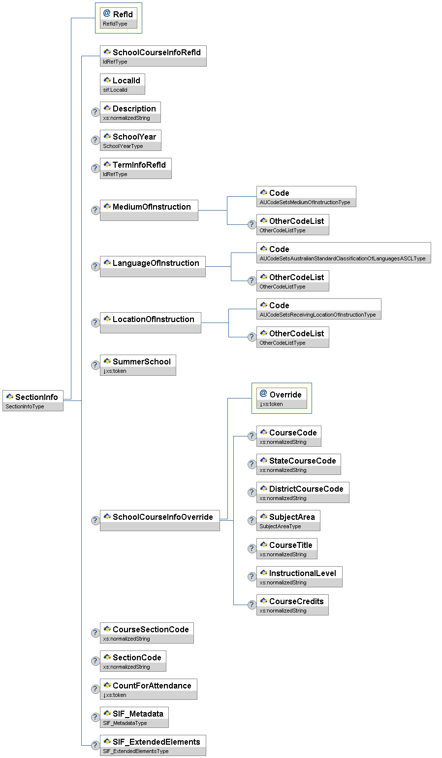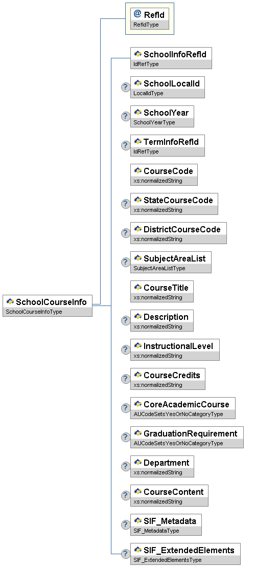 | SchoolCourseInfoRefId | O | The GUID of the SchoolCourseInfo object. | RefIdType | |