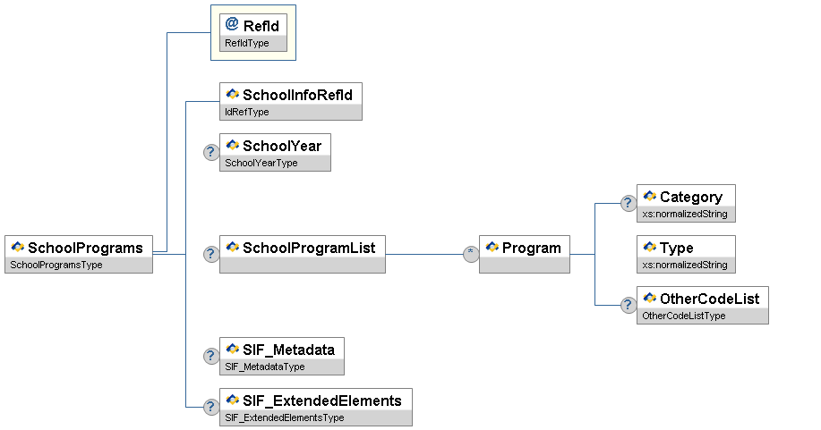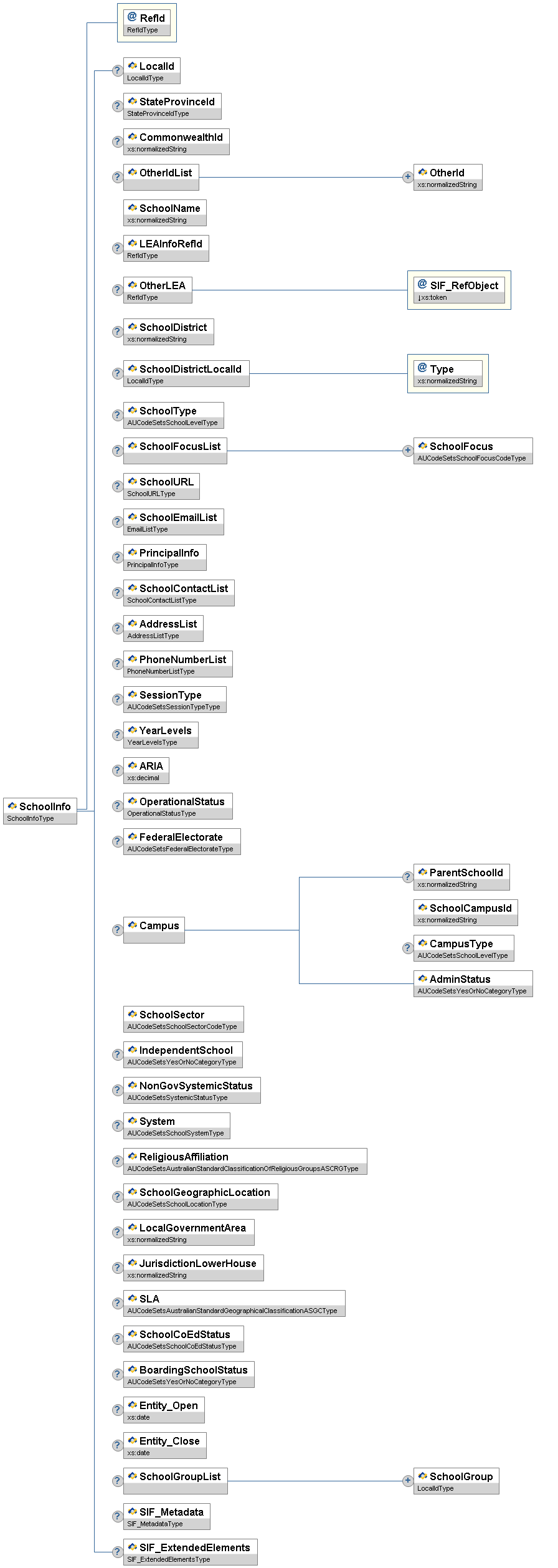 | SchoolInfoRefId | O | Optional the GUID of the SchoolInfo Object if this object is known in the zone | IdRefType | |