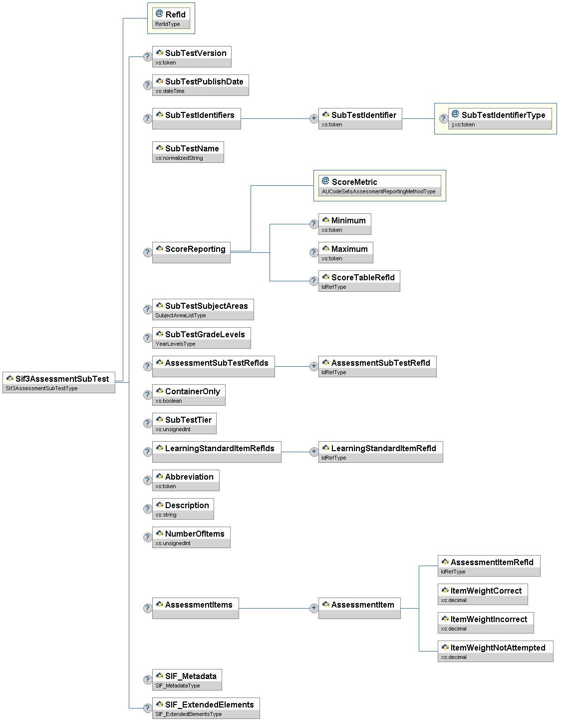 | AssessmentId | O | The state, local or publisher unique Id for the assessment. | xs:normalizedString | |