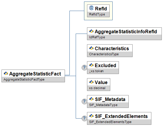 | AggregateStatisticFact | This object is the actual value of a statistical measurement. It is always associated with one statistic and one or more characteristics. | |||