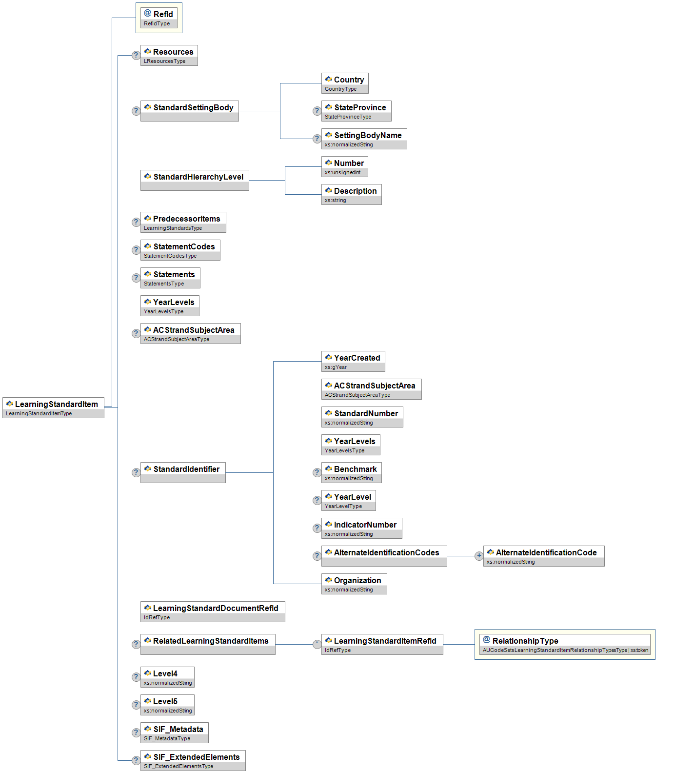 | LearningStandards | O | Associated | LearningStandardsType | |