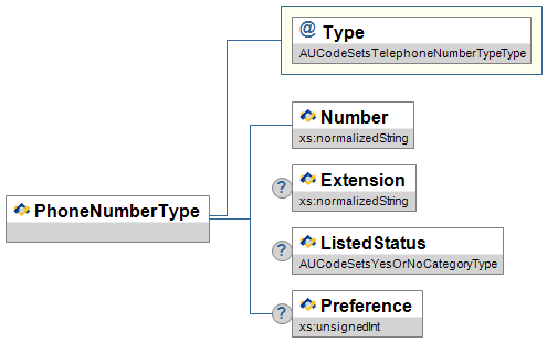 | @ | Type | M | Code that defines the location of the address. Note: A subset of specific valid values for each instance in a data object may be listed in that object. | AUCodeSetsAddressTypeType |
