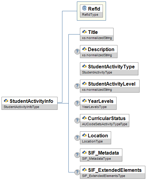 | StudentActivityInfoRefId | M | Low | GUID that identifies the activity in which the student participates. | IdRefType | |