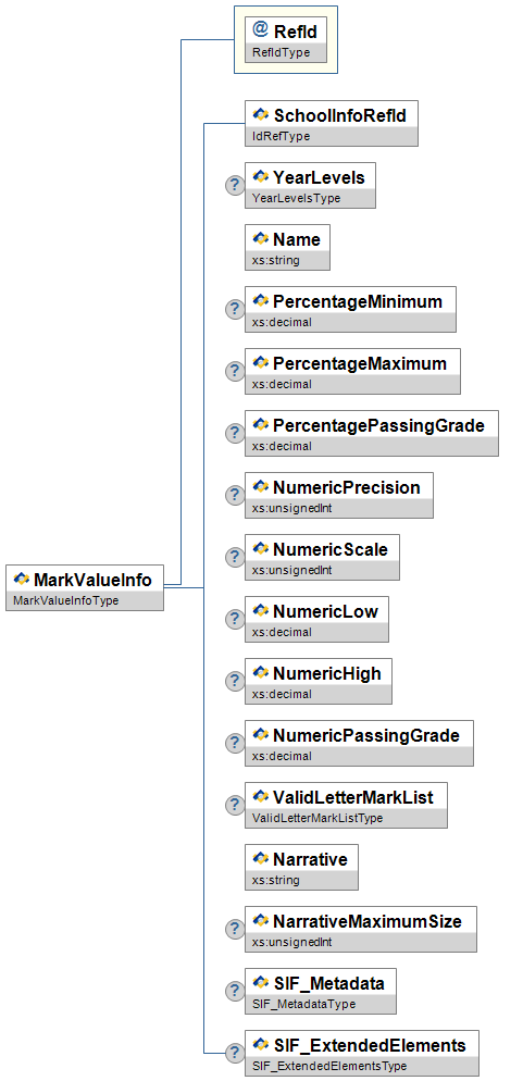 | YearLevels | O | Low | The year levels that this MarkValueInfo applies to. | YearLevelsType | |