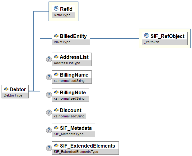 Figure 3.7.2-1: Debtor| Element/@Attribute | Char | Privacy Rating | Description | Type | |