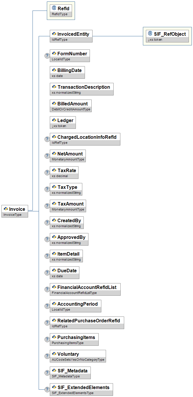 | @ | SIF_RefObject | M | High | RefId of SIF object referenced by Invoiced Entity. | values: