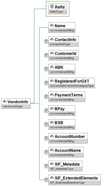 | VendorInfoRefId | M | Low | This object references the VendorInfo object being billed. | IdRefType | |