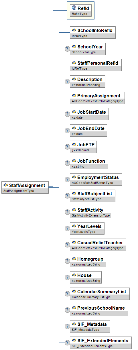@![]() | RefId | M | Low | The GUID that uniquely identifies a particular staff assignment. | RefIdType | ||||||